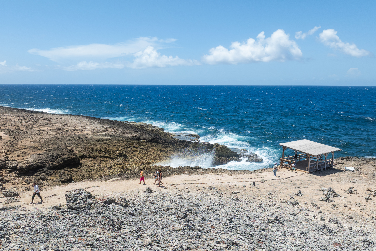 Next, we continue to the north coast and the impressive Shete Boka National Park. The name means “seven inlets,” and here you’ll witness Curaçao’s raw side. At Boca Pistol, you’ll feel the sheer force of the ocean: waves crash against the rocks with such power that water shoots meters into the air like the blast of a cannon. A natural phenomenon that will give you goosebumps.