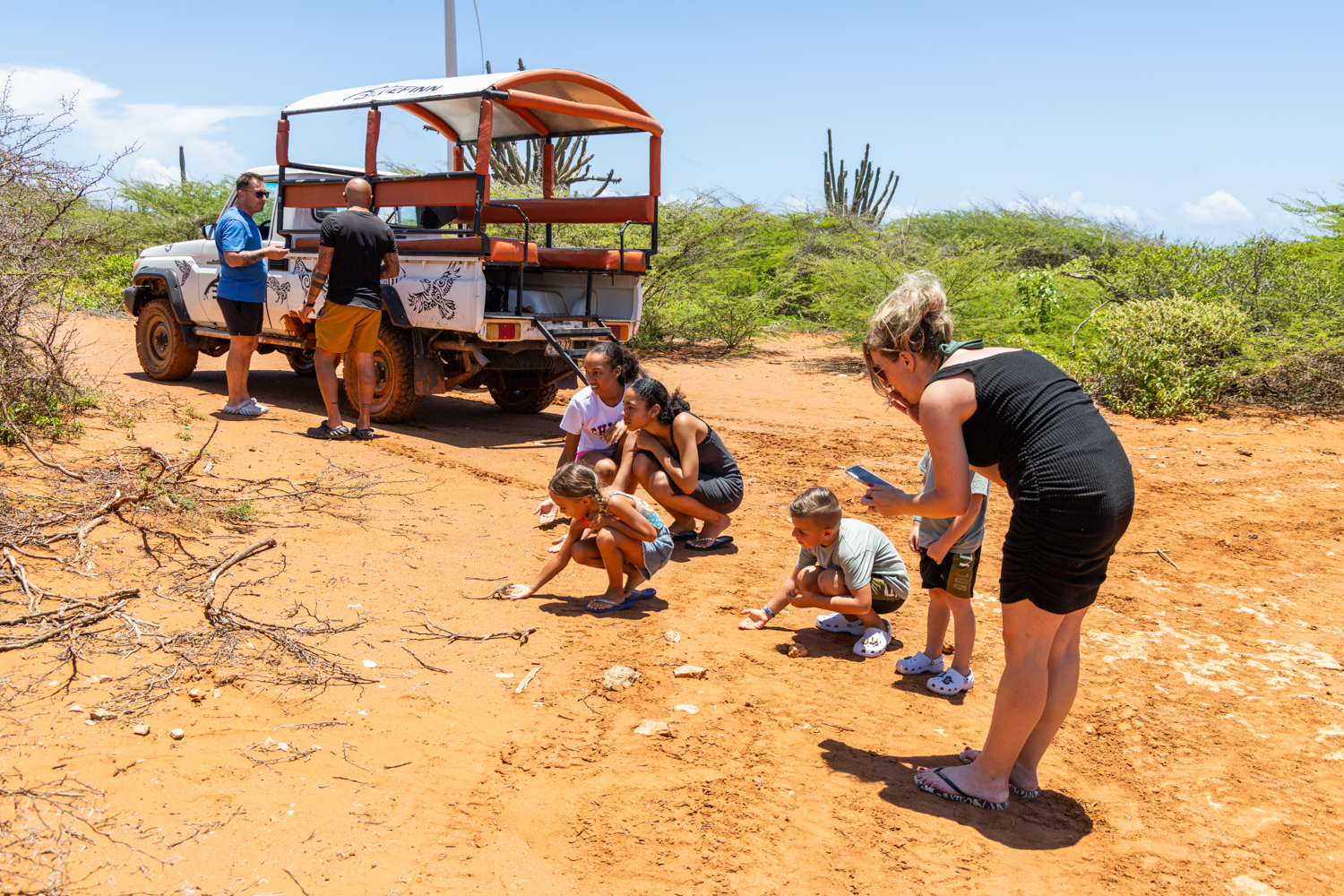 The adventure begins as soon as we leave the paved road and enter the Hato plains. Get ready for a true off-road ride: bumpy trails, sand, rocks, and wild vegetation. The jeep maneuvers between cacti and shrubs while birds of prey (Warawaras) circle above; this is Curaçao’s wilderness up close.