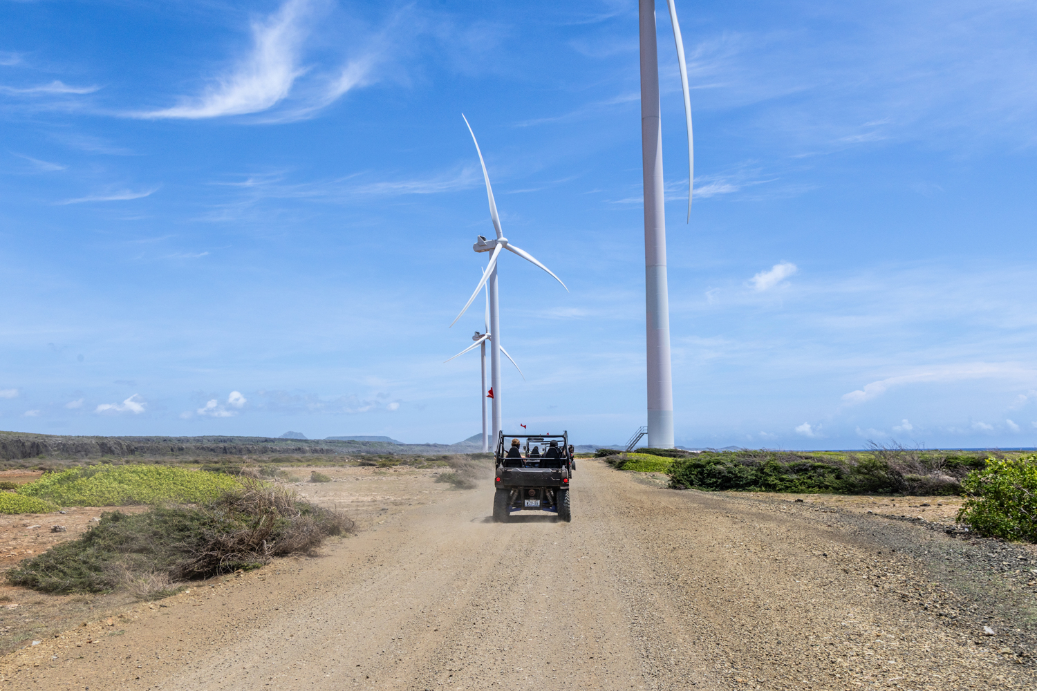 We then follow the route past the towering wind turbines of East Curaçao, rising dramatically above the landscape. An impressive sight and a striking contrast with the rugged wilderness around you.