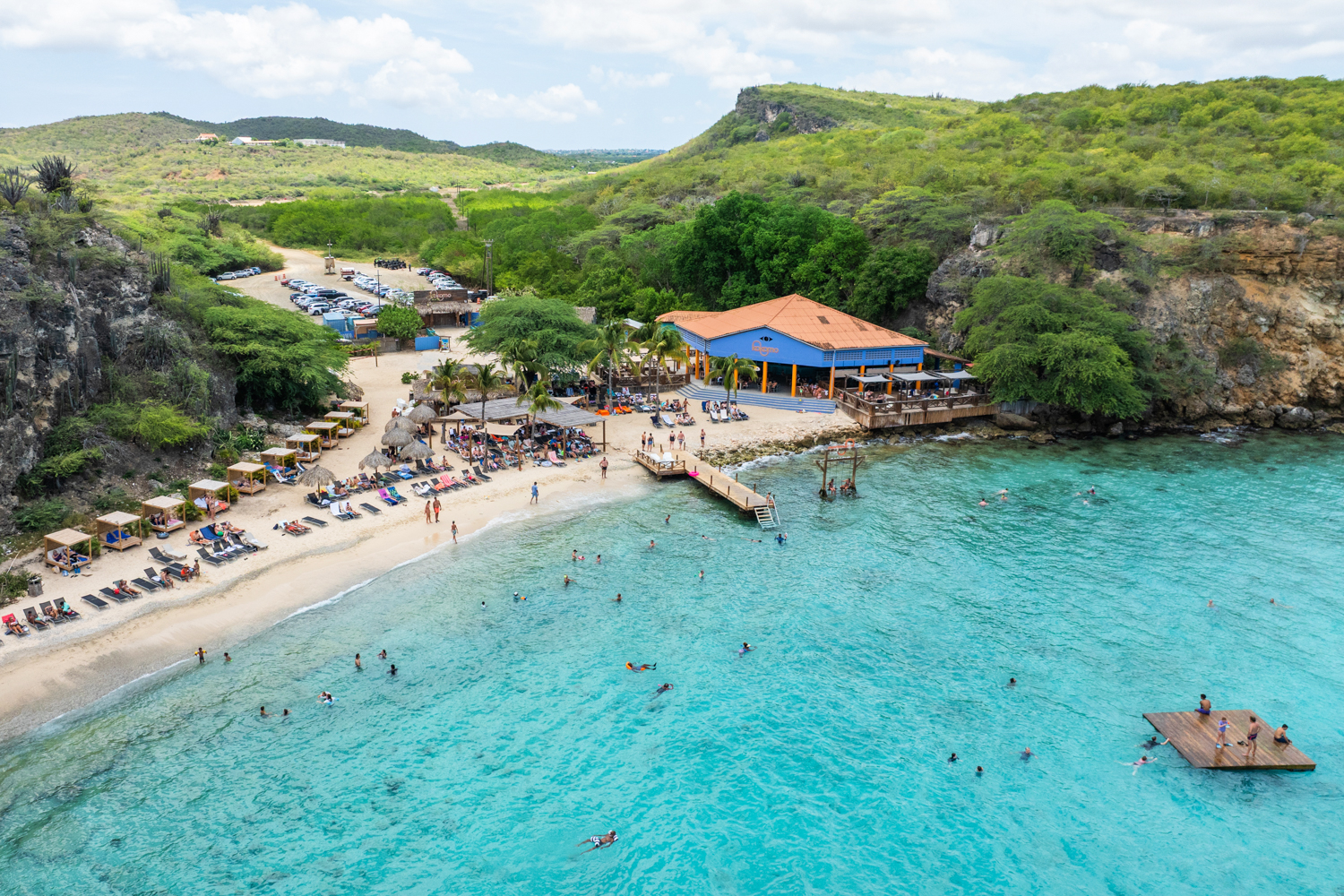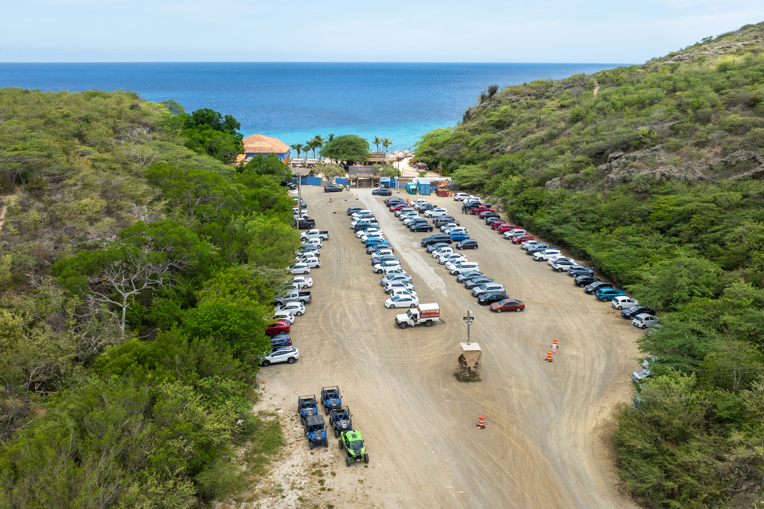 Next, we ride along the ‘Weg naar Bullenbaai’, passing the massive white oil tanks – an impressive contrast to the island’s natural scenery. Our journey takes us to Vaersenbaai (Kokomo Beach), where it’s time to cool off with a refreshing swim in the Caribbean Sea. The perfect break to wash away the dust and sand!